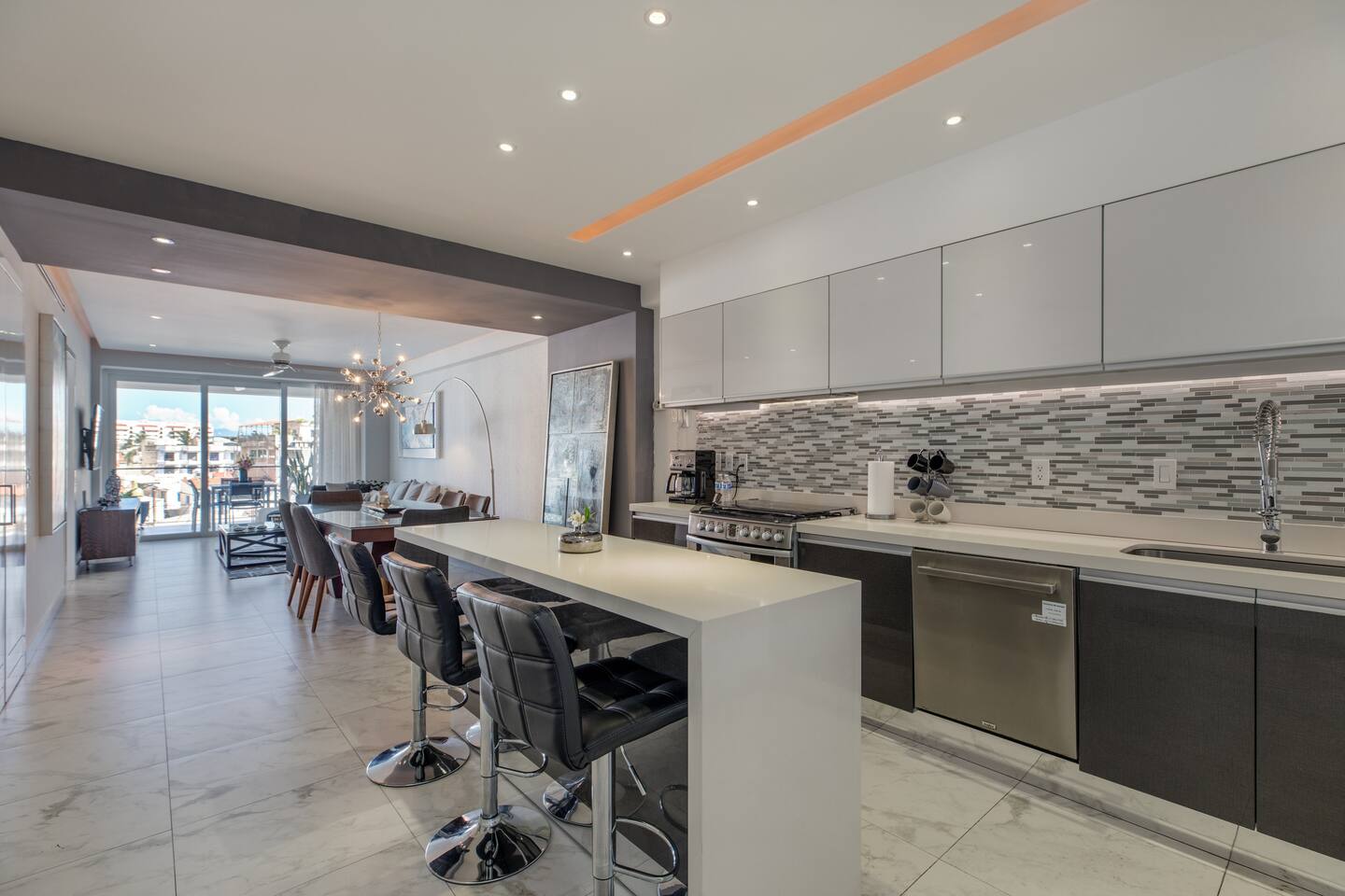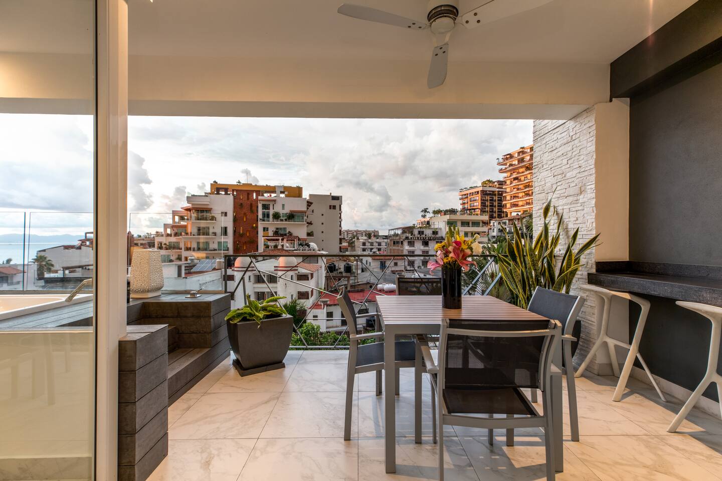 Modern Luxe 1300 sf 2 King bd/2ba fully appointed condo in the heart of the Romantic Zone - Los Muertos Beach *1 Block to Los Muertos Beach *Walkable - Romantic Zone, Pier, Malecon *Rooftop infinity Pool, Hot/Cold Jacuzzis, Gym, Wet Bar, Fire Pit *Private Balcony Hot tub *LGBTQ, Kid, Pet Friendly * 24/7 Security *Daily Cleaning Service *Value add Concierge Services - Food Stocking, VIP Suburban, Chef, Sitting *AC, Fans throughout, Dimmable LED Lights * Dinner Parties for 6 *Free Parking